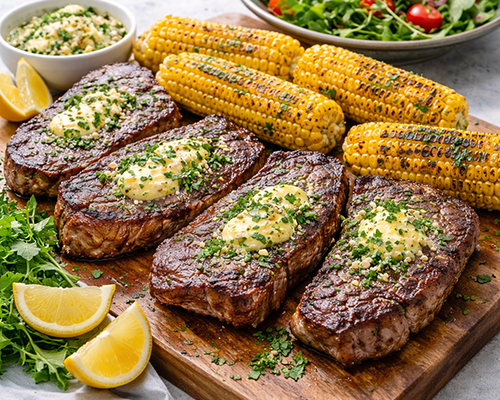 BBQ Rump Steak with Garlic Butter & Grilled Corn